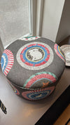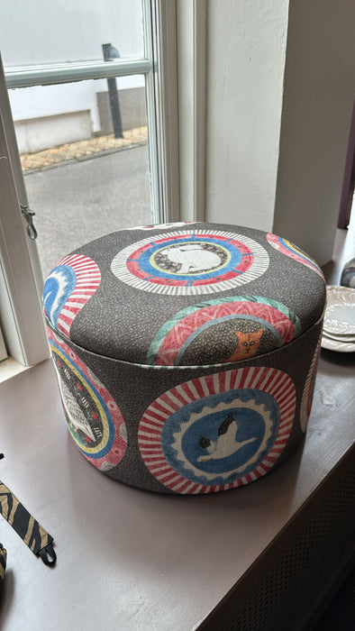 Vintage puf ompolstret med nyt smukt stof. Her med kanin på toppen.