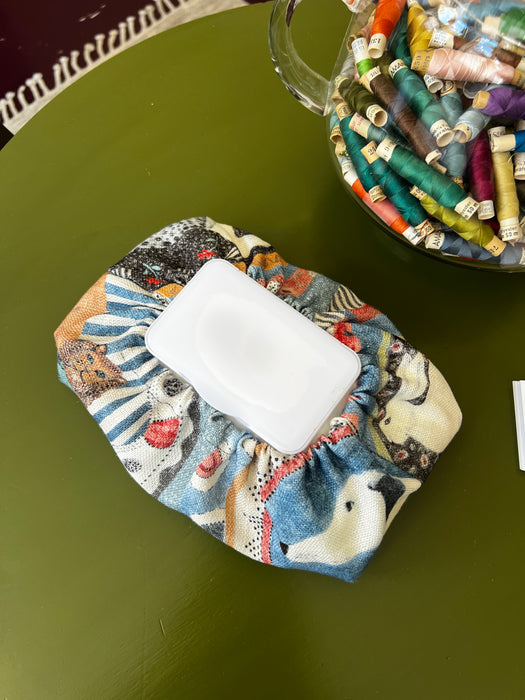 Vådservietpose i det smukkeste stof, der er to tilbage og der kommer ikke flere i denne blå.